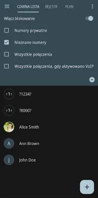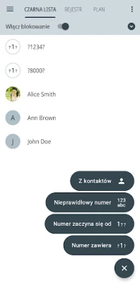 Sercem aplikacji jest rozbudowana Czarna Lista, umożliwiająca precyzyjne zarządzanie niechcianymi numerami. Z łatwością możesz dodawać je z rejestru połączeń (w rozszerzonej wersji), listy kontaktów lub wprowadzać ręcznie. Dodatkowo, oferujemy zaawansowane opcje blokowania: możesz odrzucać połączenia od numerów rozpoczynających się od określonych cyfr lub zawierających konkretne sekwencje, co pozwala na skuteczne zablokowanie całych grup spamerów. Jednocześnie, nie musisz obawiać się utraty ważnych połączeń. Funkcja Biała Lista gwarantuje, że wybrane przez Ciebie kontakty nigdy nie zostaną zablokowane, zapewniając priorytet dla kluczowej komunikacji.